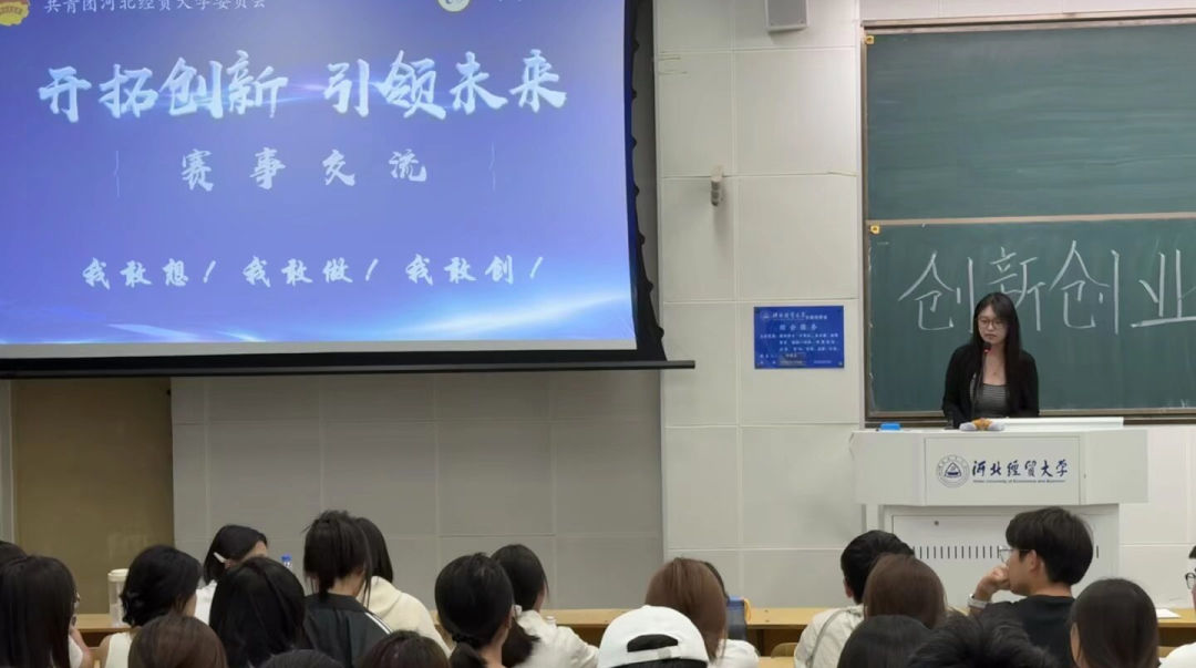 宣讲会上,闫梦帆着重介绍了各类赛事的基本概念、核心区别。她通过对比说明,清晰阐释了创业计划竞赛聚焦商业项目的市场潜力与运营模式,学术科技作品竞赛侧重科研创新与成果实用性的不同赛道特点,讲解过程中她搭配简单案例让新生直观理解赛事定位。与此同时,她也简要提及了赛事参与的基本流程,为同学们初步勾勒出参赛的路径框架,鼓励同学们“敢想、敢做、敢创”,积极投身赛事历练。
