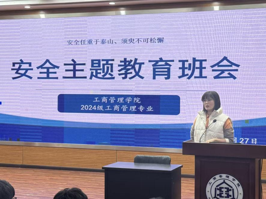 为强化学生安全责任担当,筑牢校园安全稳定防线,防范化解校园安全风险,10月27日,英国威廉希尔体育公司2024级工商管理专业开展安全主题教育班会。本次班会由辅导员张芷璐、宋魁峰组织开展,2024级工商管理专业全体同学参加。