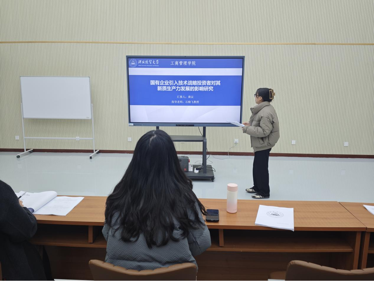 汇报人商议以“国有企业引入技术战略投资者对其新质生产力发展的影响研究”为题,以全部A股国有企业为研究样本,基于资源基础理论和高阶梯队理论探究国有企业引入技术战略投资者对促进新质生产力发展的效果及其作用机制,并引入控制权相机配置作为调节效应深入研究财务资本和智力资本的协同作用,对持续推进和深化国有企业混改具有重要的政策意义。