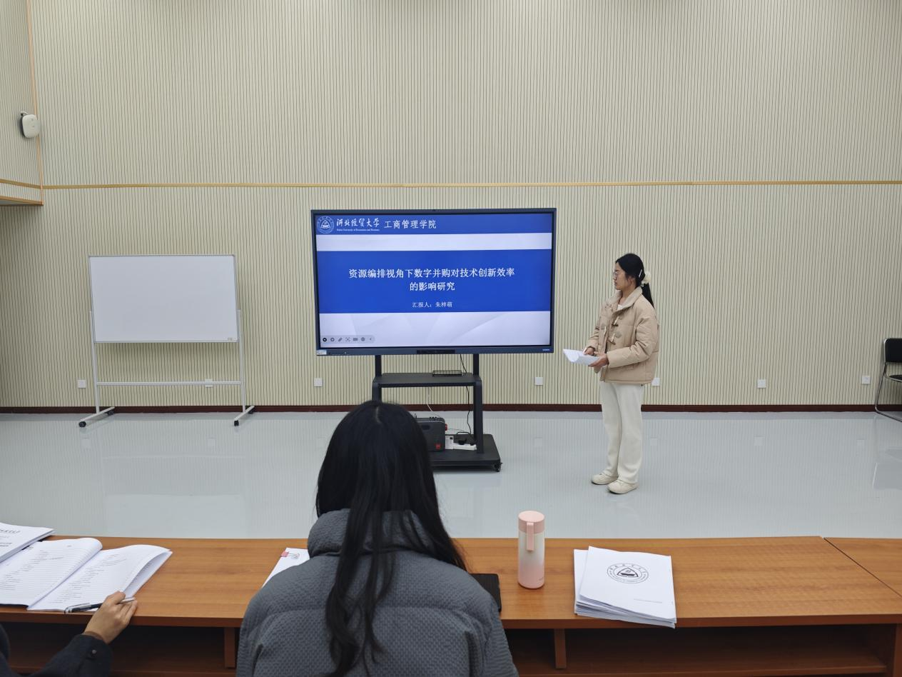 汇报人朱梓萌以“资源编排视角下数字并购对技术创新效率的影响研究”为题,以制造业企业为研究样本,研究了数字并购对企业技术创新效率的影响,并从资源编排视角对资源配置效率、技术协同能力、数字化水平三个中介作用机制进行了研究,为理解数字并购在提升企业技术创新效率中的作用提供了实证依据。