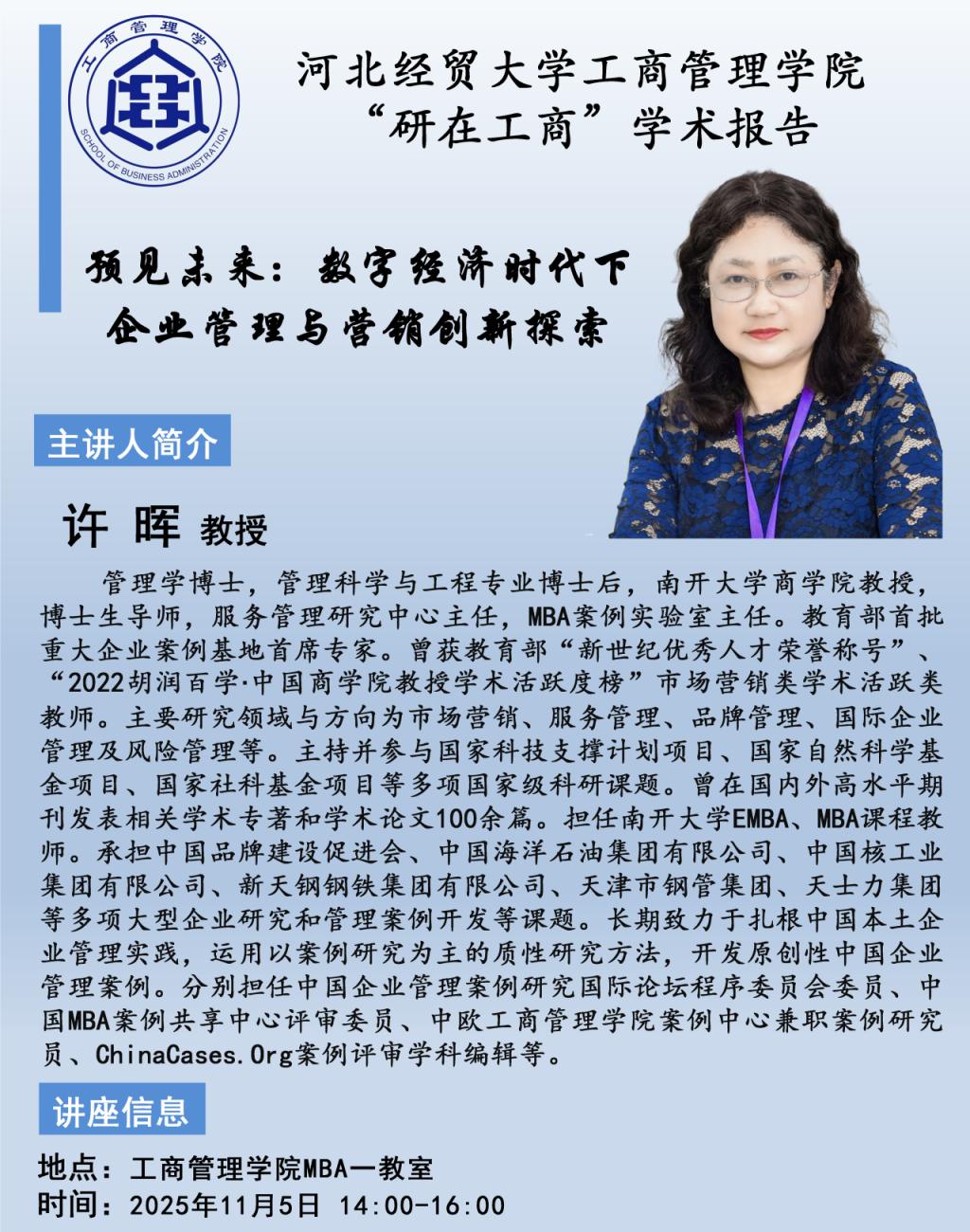 学术讲座预告||南开大学许晖教授将来williamhill官网-中文官网讲学