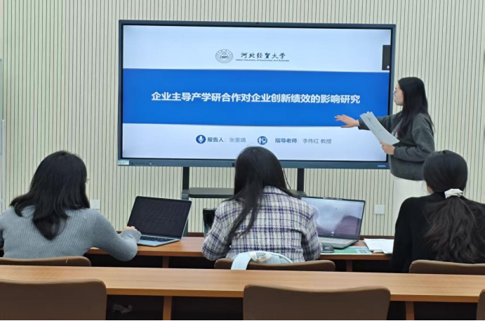 汇报人张雯靖以“企业主导产学研合作对企业创新绩效的影响研究”为题,以沪深A股上市公司为研究样本,从区域科技基础条件平台建设和创新资源集聚两个纬度考察企业主导产学研合作对企业创新绩效的影响,为理解企业主导的产学研合作在提升企业创新能力中的作用提供实证依据。