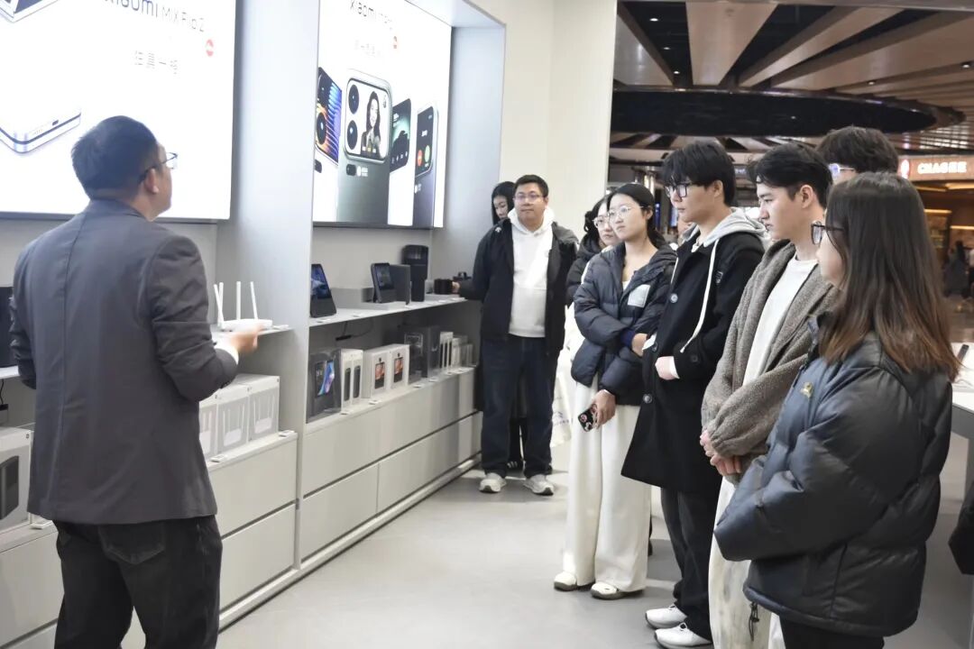 williamhill官网-中文官网师生首先抵达万象城小米体验店。孙振按产品品类,系统讲解了各类核心产品特点,涵盖小米系列手机、小爱音箱等智能设备,以及从个护产品到大家电的全品类生态,详细介绍了各产品线的技术亮点与创新优势。通过现场演示与细节解读,生动呈现了产品“科技普惠、极致性价比”的品牌理念,让师生们沉浸式感受了小米在消费电子领域的创新实力与市场竞争力,对智能科技行业的发展趋势有了更直观的认知。随后,他分享了企业优势。小米股价表现亮眼,深受资本市场看好,核心原因在于其坚守“让每位中国消费者都享有科技选择权”的理念,产品定位覆盖不同收入群体,不抛弃每一位奋斗者。小米海外业务已拓展至多个地区,海外派驻拥有显著薪资优势,内部“人才活水”机制更为员工提供了多元发展机会。