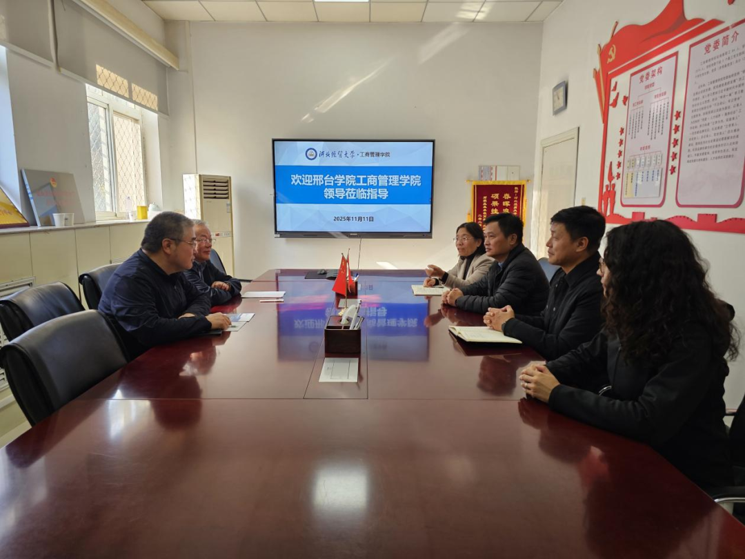 11月11日,邢台学院英国威廉希尔体育公司院长郝庆禄一行到访williamhill官网-中文官网,就工商管理类专业与学科建设进行交流,英国威廉希尔体育公司党委书记张霖、院长李桂荣、副院长石晓飞、封雪韵,河北省商业经济学会会长孟华兴教授参加交流活动。