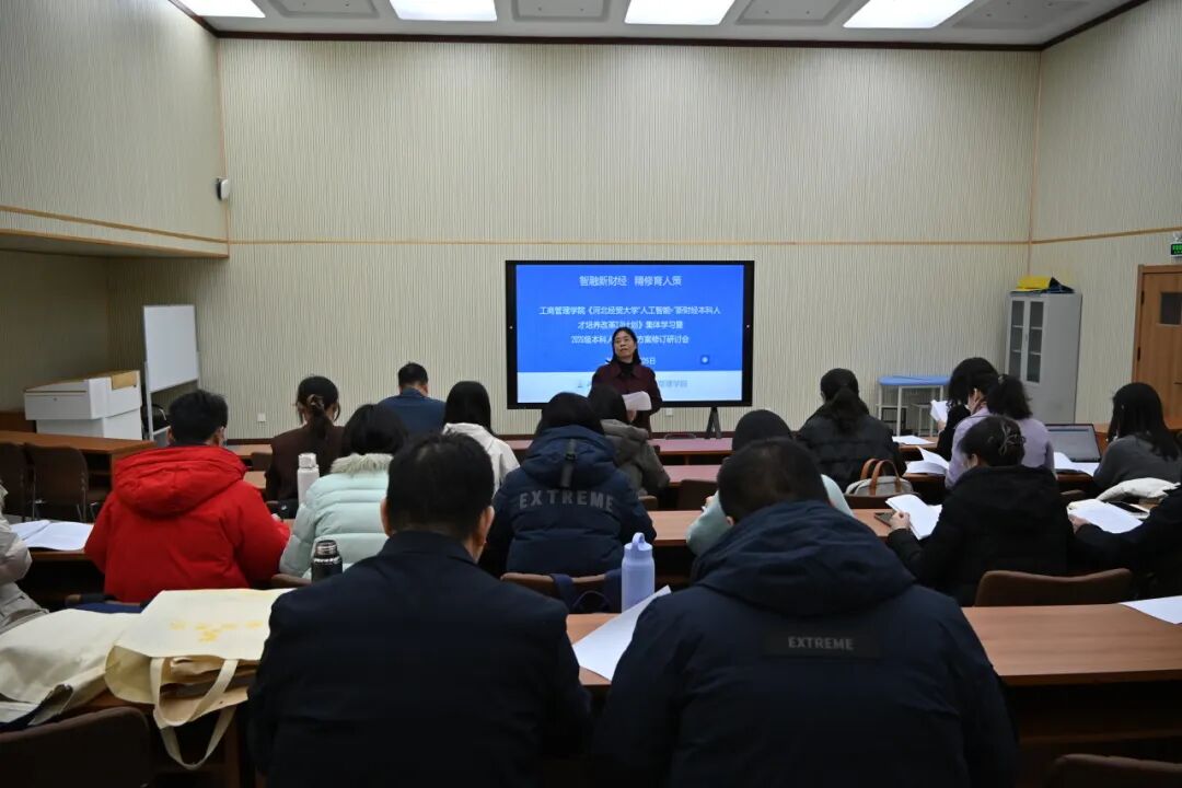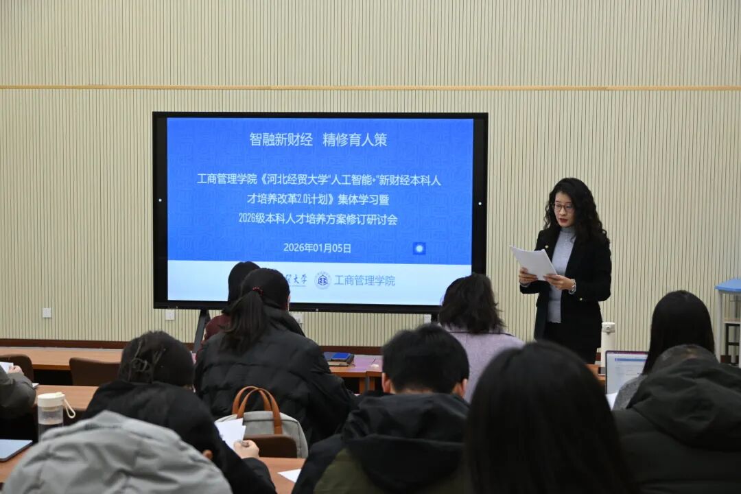 1月5日,英国威廉希尔体育公司在MBA1教室召开《“人工智能+”新财经本科人才培养改革2.0计划》(以下简称《2.0计划》)集体学习暨2026级本科人才培养方案修订研讨会。会议以“智融新财经,精修育人策”为主题,聚焦人才培养方案升级、应用型专业转型、智慧课程建设、产教融合深化等核心议题,共谋新财经人才培养提质路径。院长李桂荣出席会议并讲话,副院长石晓飞、封雪韵,各系主任、副主任及骨干教师近30人参会。
