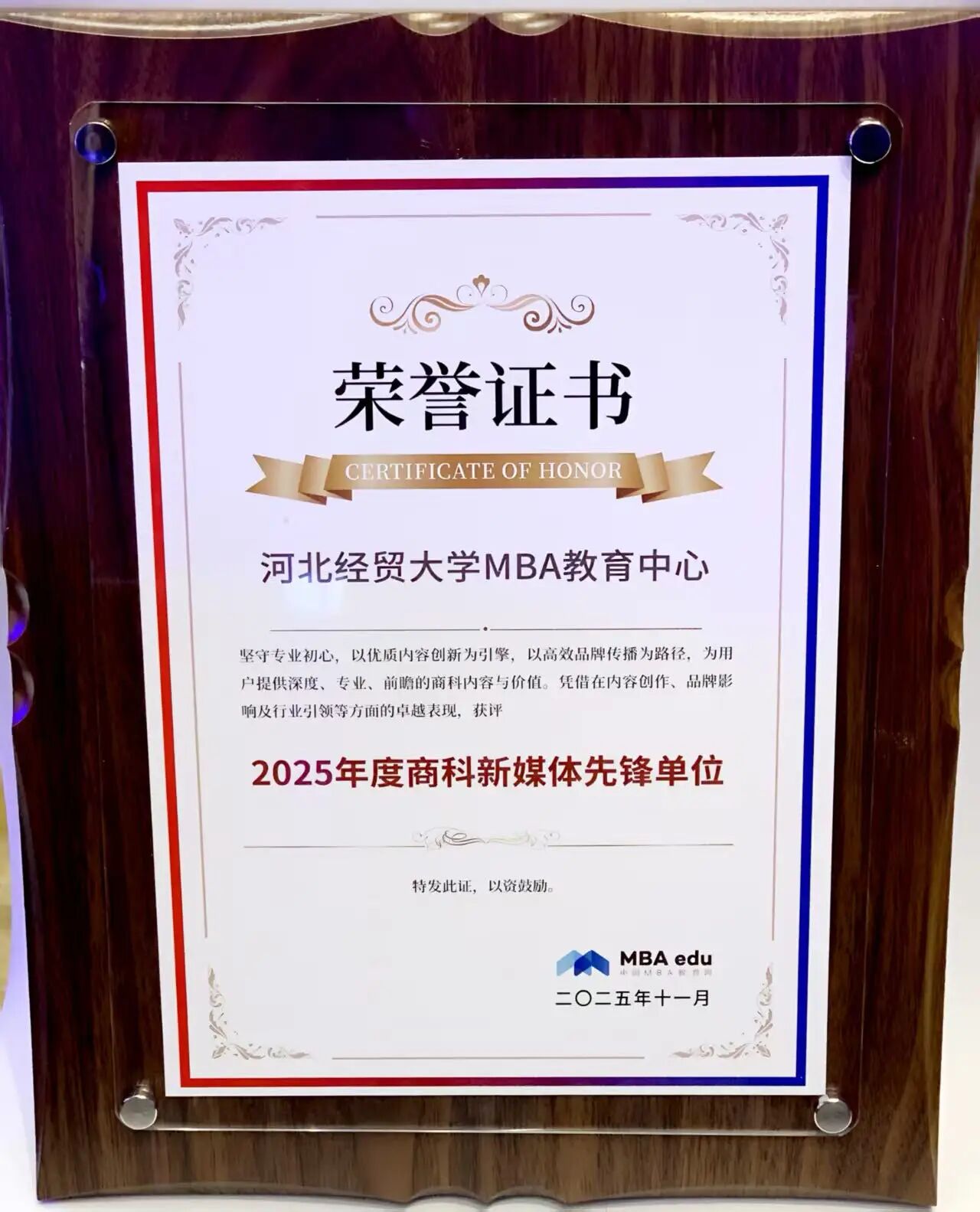 williamhill官网-中文官网MBA教育中心荣获 “2025年度商科新媒体先锋单位”称号。