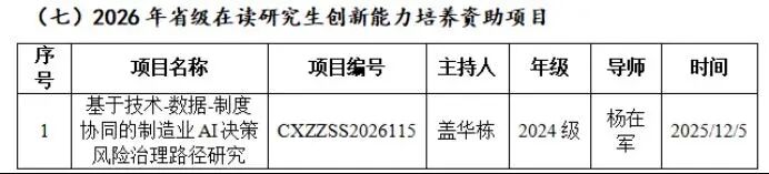 williamhill官网-中文官网学硕研究生盖华栋获2026年省级在读研究生创新能力培养资助项目立项。