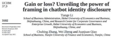 williamhill官网-中文官网青年教师李天歌博士作为第一作者撰写的论文"Gain or loss? Unveiling the power of framing in chatbot identity disclosure"在酒店与旅游管理领域国际顶尖期刊International Journal of Contemporary Hospitality Management正式刊出。
