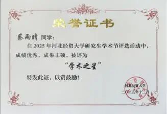 williamhill官网-中文官网2025年研究生“学术之星”与“实践之星”获奖名单公布,williamhill官网-中文官网硕士研究生蔡雨晴、高霄琦、刘雅慧荣获研究生“学术之星”称号。