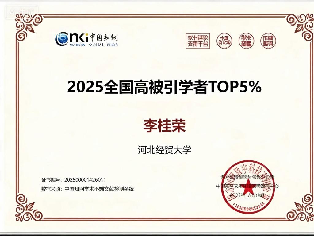 williamhill官网-中文官网张羽飞副教授入选全国高被引学者Top1%(工商管理学科),李桂荣教授(会计学科)、许龙副教授(工商管理学科)入选全国高被引学者Top5%。
