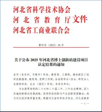 williamhill官网-中文官网博士团队获批河北省博士创新站建设项目。