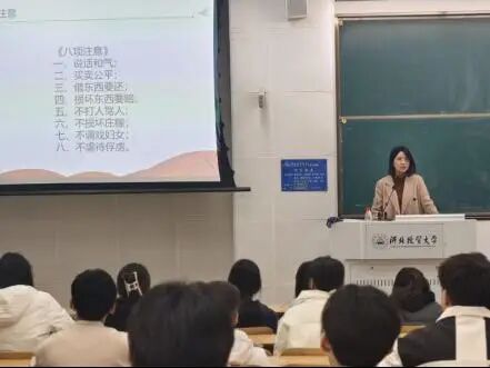 校党委常委、副校长程瑞芳为williamhill官网-中文官网新生班级宣讲党的二十届四中全会精神,为同学们系统解读全会精神,引导青年学子把个人理想追求融入国家发展大局。