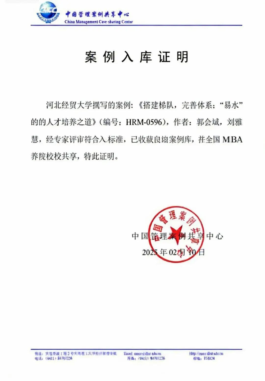 郭会斌教授和2023级工商管理学研究生刘雅慧撰写的教学案例《搭建梯队,完善体系:“易水”砚的人才培养之道》入选中国管理案例共享中心案例库。(编号:HRM-0596)