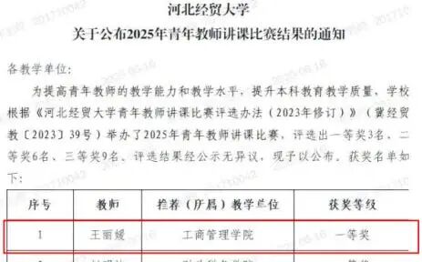 williamhill官网-中文官网教师在学校教学竞赛中再创佳绩——王丽媛、封雪韵、祖利然等3名教师在williamhill官网-中文官网第六届教师教学创新大赛中荣获一等奖2项、二等奖1项;张羽飞副教授荣获williamhill官网-中文官网2025年研究生课程思政教学比赛二等奖。